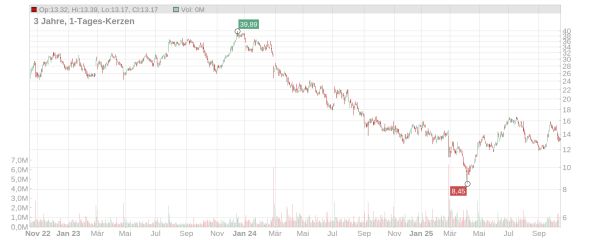 Sollte sich der erhoffte Aufschwung einmal mehr verzögern, droht dem Maschinenbauer der Chip-Industrie ein weiteres Übergangsjahr in 2026. Für Anleger, die bereits seit einigen Quartalen auf die Wende warten, wären das keine guten Nachrichten. Ohnehin ist die Kursentwicklung der Aixtron-Aktie (von 39 Euro Ende 2023 bis 13 Euro aktuell) mehr als ernüchternd.