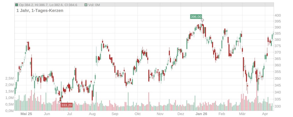 Während die konjunkturellen Rahmenbedingungen in Teilen der Industrie für Zurückhaltung sorgen, kennt die Allianz-Aktie (ISIN: DE0008404005) derzeit kaum ein Halten. Noch vor Kurzem berichteten Analysten von einem stabilen Kursniveau, als das Papier ein mehrwöchiges Hoch nahe 378 Euro erreichte. Wer jedoch dachte, dass bei dieser Marke bereits eine Konsolidierung einsetzt, wurde in den vergangenen Handelstagen eines Besseren belehrt.