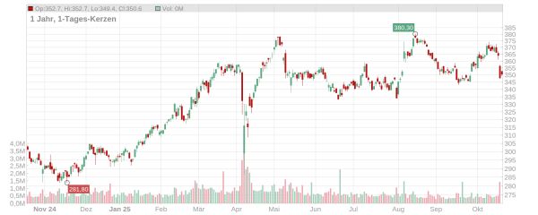 Die Allianz-Aktie ist Ende vergangener Woche um gut vier Prozent eingebrochen und notiert aktuell bei rund 350 Euro (Stand: 20. Oktober 2025, ca. 11 Uhr). Damit ist das Papier inzwischen wieder ein gutes Stück von den Rekordkursen aus dem August bei knapp 380 Euro entfernt.