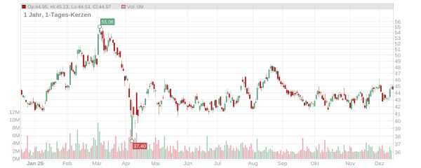 Der Kurs der BASF-Aktie ist in den letzten Handelstagen leicht gestiegen und notiert aktuell bei knapp 45 Euro (Stand: 15. Dezember 2025, ca. 13 Uhr). Seit Jahresbeginn steht unterm Strich ebenfalls ein kleines Plus von rund fünf Prozent auf der Kurstafel – für die gesamte Chemiebranche ist es ein weiteres herausforderndes Jahr.