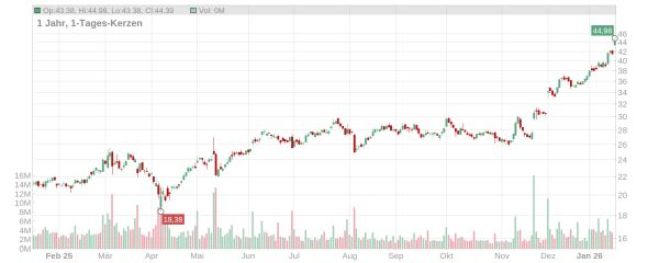 Der Kurs der Bayer Aktie ist zum Start in die neue Handelswoche deutlich um mehr als sechs Prozent geklettert und notiert aktuell bei gut 44 Euro (Stand: 19. Januar 2026, ca. 11 Uhr). Damit steht seit Jahresbeginn ein sattes Plus von 19 Prozent auf der Kurstafel – bereits im abgelaufenen Börsenjahr 2025 gehörte die Bayer Aktie dank eines starken Endspurts zu den größten Gewinnern.