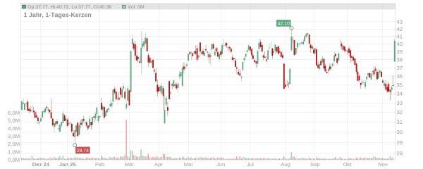 Der Kurs der Bechtle-Aktie ist im Vormittagshandel deutlich um gut 15 Prozent geklettert und notiert aktuell knapp über der Marke von 40 Euro (Stand: 14. November 2025, ca. 10 Uhr). Die schwache Entwicklung seit Ende September konnte damit auf einen Schlag wieder kompensiert werden und seit Jahresbeginn steht ein Plus von etwa 27 Prozent auf der Kurstafel.