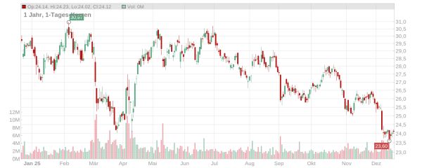 In den letzten Wochen – und im gesamten Jahr 2025 – hat die Vonovia-Aktie keine gute Performance abgeliefert. Unter anderem die Sorgen vor Regulierungen im Immobilienmarkt etwa bei den Mieten sowie das Zinsumfeld belasten den Konzern. Auch charttechnisch sah es für das Papier mit dem Absacken unter die Marke von 25 Euro zuletzt nicht gut aus.