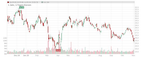 Der Kurs der Vonovia-Aktie hat sich im Vormittagshandel nach der Präsentation der frischen Zahlen unterm Strich kaum bewegt und notiert aktuell bei etwa 25,50 Euro (Stand: 05. November 2025, ca. 11 Uhr). Seit Jahresbeginn steht – trotz guter Entwicklung – ein Minus von rund acht Prozent auf der Kurstafel.