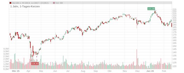 Die enttäuschende Prognose für das Jahr 2026 (einmal mehr aufgrund der Lieferketten) ist ein echter Rückschlag für Airbus, wie auch die Kursbewegung am Vormittag zeigt. An dieser Stelle ist die Abhängigkeit von Zulieferern nach wie vor ein Problem. Andererseits hat das Unternehmen einen gigantischen Auftragsbestand von 8.754 Flugzeugen vorzuweisen.