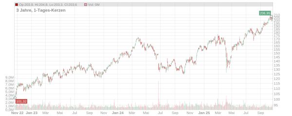 Der Kurs der Airbus-Aktie ist Anfang Oktober erstmals über die 200 Euro-Marke geklettert und notiert aktuell mit knapp 204 Euro nur sehr knapp unter dem Allzeithoch (206 Euro) von letzter Woche (Stand: 21. Oktober 2025, ca. 11 Uhr). Seit Jahresbeginn hat das DAX-Papier nun mehr als 30 Prozent zugelegt.