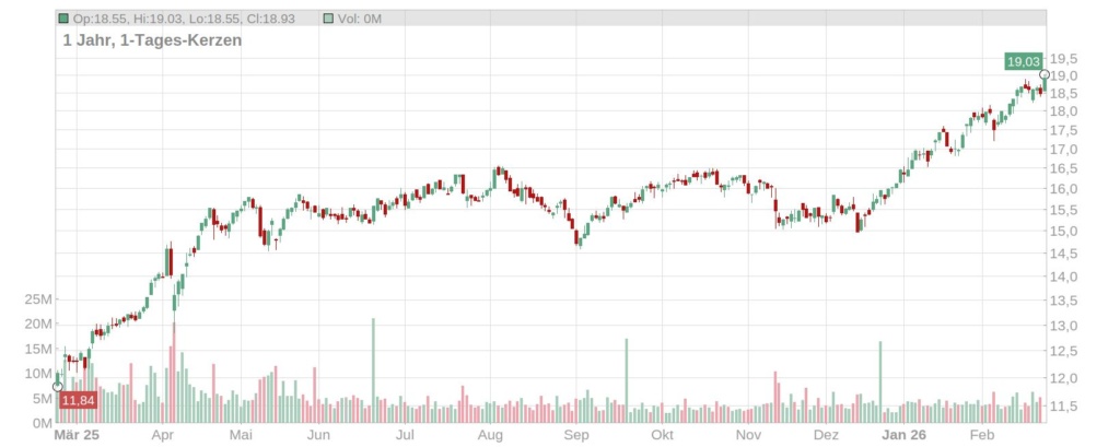 - Chancen: Ein Ergebnis am oberen Ende der Prognosespanne und ein positiver Ausblick auf 2026 könnten den Kurs erstmals in Richtung 20-Euro-Marke hieven. Die defensive Qualität der Aktie bleibt in unsicheren Börsenphasen ein Pluspunkt.