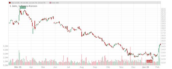 Der Kurs der Evonik Aktie konnte in den letzten Tagen deutlich zulegen und notiert aktuell bei knapp 15 Euro (Stand: 9. Februar 2026, ca. 11.30 Uhr). Erst im Januar war das Papier mit rund 12,50 Euro auf ein neues Allzeittief gefallen – seit Jahresbeginn steht nun insgesamt ein Plus von elf Prozent auf der Kurstafel.