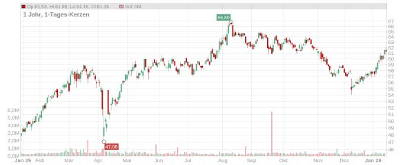 Der Kurs der GEA Aktie ist in den ersten Handelstagen des neuen Börsenjahres kräftig um mehr als sechs Prozent geklettert und notiert aktuell bei etwa 61,50 Euro (Stand: 16. Januar 2026, ca. 10.30 Uhr). Das Allzeithoch von August 2025 (bei knapp 67 Euro) ist damit wieder fast in Reichweite.