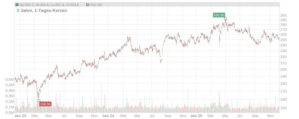 Der Kurs der Hannover Rück-Aktie hat sich in den letzten Tagen und Wochen unterm Strich nur wenig bewegt und notiert aktuell bei knapp 254 Euro (Stand: 09. Dezember 2025, ca. 11 Uhr). Damit hat das Papier auch seit Jahresbeginn kaum zugelegt – das Allzeithoch von Anfang Mai bei 290 Euro ist derzeit nicht greifbar.