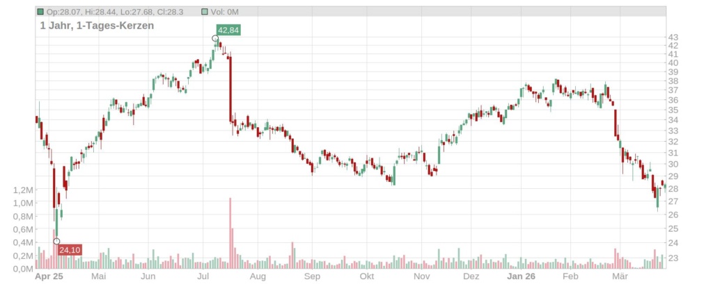 Jahreschart Jungheinrich Aktie, Quelle: https://aktienscreener.com/