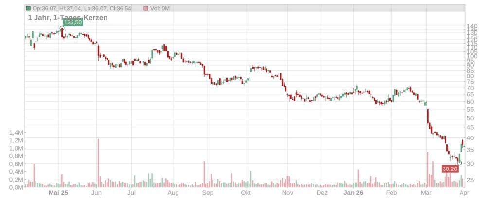 Der Kurs der Redcare Pharmacy Aktie konnte in den letzten Handelstagen deutlich zulegen und notiert satte 20 Prozent höher als zu Beginn der Woche – aktuell sind es knapp 37 Euro (Stand: 2. April 2026, ca. 10.30 Uhr). Allerdings: Seit der Präsentation der Geschäftszahlen vor etwa einem Monat hat das Papier trotz der jüngsten Rally 38 Prozent eingebüßt.