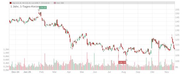 Seit Jahresbeginn steht allerdings ein Minus von rund 21 Prozent auf der Kurstafel. Während die Aussichten für 2026 – präsentiert beim Kapitalmarkttag im Oktober – nicht so richtig überzeugen konnten, haben die jüngsten Quartalszahlen positiv überrascht. Ob das Papier der Merck KGaA aus Darmstadt nun allerdings nachhaltig klettern kann, bleibt abzuwarten. Die Analysten sind in der Regel nach wie vor eher optimistisch und sehen Kurspotenzial.