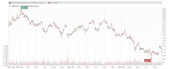 Der Kurs der Merck-Aktie ist nach dem Kapitalmarkttag um etwa 4,5 Prozent gesunken und notiert aktuell bei gut 111 Euro (Stand: 17. Oktober 2025, ca. 11 Uhr). Seit Jahresbeginn steht ein Minus von etwa 20 Prozent auf der Kurstafel – ein echter Turnaround ist derzeit nicht in Sicht.
