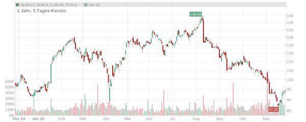 Der Kurs der Nemetschek-Aktie ist in den vergangenen Tagen um einige Prozentpunkte geklettert und notiert aktuell bei rund 94 Euro (Stand: 27. November 2025, ca. 10 Uhr). Damit hat das Papier das Jahrestief von letzter Woche (87 Euro) zwar deutlich überwunden – ausgehend vom Allzeithoch aus Anfang August steht jedoch ein Minus von mehr als 30 Prozent auf der Kurstafel.