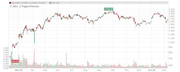 Der Kurs der Rheinmetall Aktie tendiert in den letzten Tagen unterm Strich eher seitwärts und notiert aktuell bei 1.645 Euro (Stand: 10. Februar 2026, ca. 10.30 Uhr). Vergangene Woche war das Papier des Rüstungs-Konzerns nach einem Pre-Call mit Analysten eingebrochen – auf Monatsbasis steht ein Minus von etwa 13 Prozent auf der Kurstafel.