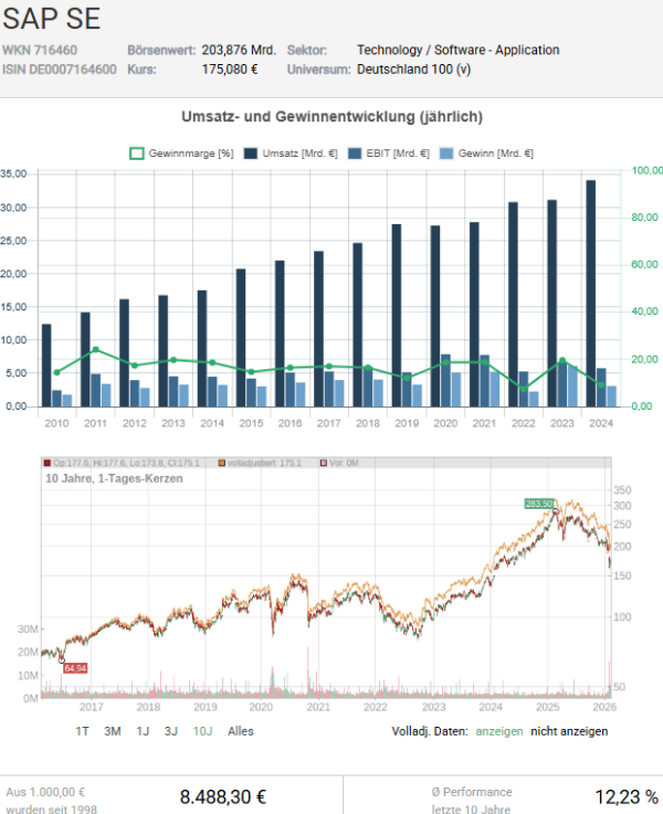 Insgesamt zeigt die aktuelle Bewertung ein ausgewogeneres Bild als in der Übertreibungsphase 2024. SAP wird nicht mehr mit dreistelligen Multiplikatoren gehandelt, aber weiterhin mit klaren Wachstumsannahmen. Die Aktie steht damit zwischen Stabilität eines etablierten Konzerns und Dynamik eines Transformationsunternehmens. Entscheidend bleibt, ob die strategische Neuausrichtung in steigende und zugleich stabile Gewinne übersetzt werden kann.