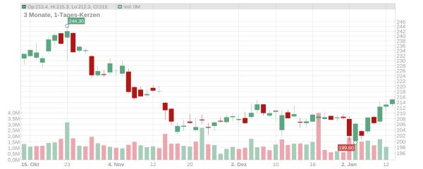 Doch der Start in 2026 ist geglückt und macht Hoffnung – aktuell sind es wieder knapp 215 Euro (Stand: 13. Januar 2026, ca. 10 Uhr). Nach der Enttäuschung des Vorjahres könnte das nun der Beginn einer Aufholjagd sein. Kurzfristig sollten Anleger auf die Ende Januar präsentierten Jahreszahlen – und vor allem auf den Ausblick auf 2026 – achten.