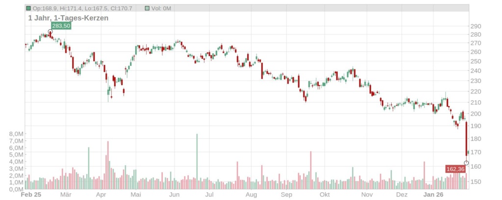 Für SAP und die Aktie gibt es aktuell zwei Lesarten: Auf der einen Seite wächst das Unternehmen kräftig und auch der Ausblick auf 2026 ist ordentlich. Unter anderem rechnet man in diesem Jahr mit einem Free Cashflow von rund zehn Milliarden Euro. Auf der anderen Seite wird im Zeitalter der Künstlichen Intelligenz mehr und mehr das Geschäftsmodell mit Clouderlösen angezweifelt – bzw. werden hier aktuell erhebliche Wachstumsraten erwartet, um der SAP Aktie positive Impulse zu verleihen.