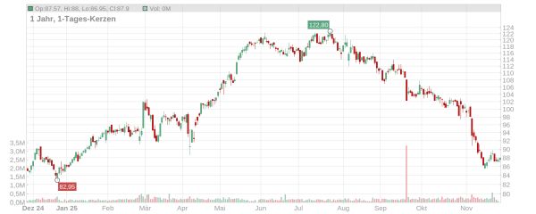 Der Kurs der Scout24-Aktie ist in den letzten Wochen und Monaten recht deutlich gesunken und notierte zuletzt mit rund 86 Euro so tief wie seit Anfang des Jahres nicht mehr (Stand: 28. November 2025, ca. 12 Uhr). Seit dem Allzeithoch aus Juli bei 122 Euro hat das Papier etwa 28 Prozent verloren – seit Jahresbeginn hat sich die Scout-Aktie unterm Strich kaum bewegt.