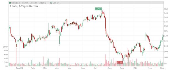 Der Kurs der Atoss-Aktie ist in den letzten rund zwei Wochen um etwa 13 Prozent geklettert und notiert aktuell bei 120 Euro (Stand: 04. Dezember 2025, ca. 12 Uhr). Das Börsenjahr 2025 verläuft insgesamt sehr turbulent für den Software-Konzern: Nach dem Allzeithoch aus Juli (147 Euro) ging es für das Papier binnen einiger Wochen kurzzeitig sogar unter die Marke von 100 Euro.