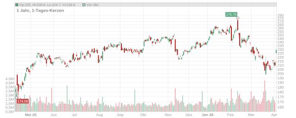 Der Kurs der Siemens Aktie ist heute in einem starken Gesamtmarkt um fast zehn Prozent gesprungen und notiert aktuell bei knapp 230 Euro (Stand: 8. April 2026, ca. 11.30 Uhr). Damit hat das Papier die Durststrecke der letzten Wochen vorerst hinter sich gelassen, auch wenn das Jahres- und Allzeithoch (275 Euro) weiterhin meilenweit entfernt ist.