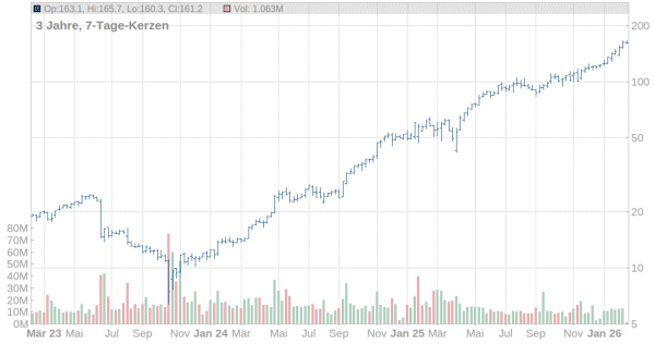 Damit bestehen gute Chancen für weitere mittelfristige Kurssteigerungen. Auf Sicht der nächsten Monate ist ein Anstieg in den Bereich der runden 200-Euro-Marke realistisch.