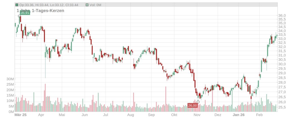 - Chancen: Sollte der Ausblick für das US-Geschäft positiv überraschen und der Schuldenabbau schneller als geplant voranschreiten, ist ein Ausbruch über die 34-Euro-Marke realistisch.