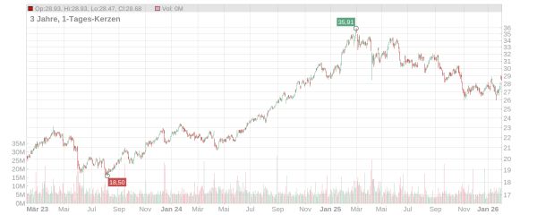 Der Kurs der Deutsche Telekom Aktie konnte in den letzten Handelstagen recht deutlich zulegen und notiert aktuell bei knapp 29 Euro (Stand: 3. Februar 2026, ca. 10 Uhr). Damit steht auch seit Jahresbeginn unterm Strich ein Plus von rund vier Prozent auf der Kurstafel – im Vergleich zu den Notierungen aus dem Frühjahr von 2025 ist hier jedoch noch Luft nach oben.