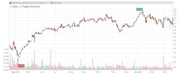 Der Kurs der United Internet Aktie ist nach der Präsentation der Geschäftszahlen im Vormittagshandel deutlich gestiegen und notiert aktuell bei etwa 27,50 Euro (Stand: 19. März 2026, ca. 10 Uhr). Seit Jahresbeginn hat sich das Papier unterm Strich kaum bewegt und ist bisher mehrfach an der nachhaltigen Überschreitung der 30 Euro-Marke gescheitert.