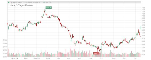 Im April 2023 notierte die LVMH-Aktie kurzzeitig über der Marke von 900 Euro – so hoch wie nie zuvor. Bezogen auf den Tiefpunkt im Juni 2025 hatte sich der Kurs des Papiers binnen zwei Jahren halbiert. Und nun hat die Luxus-Aktie nach der Q3-Überraschung wieder die 600 Euro überschritten.