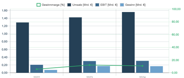 Umsatz- und Gewinnentwicklung Ionos (jährlich) | Quelle: aktienscreener.com