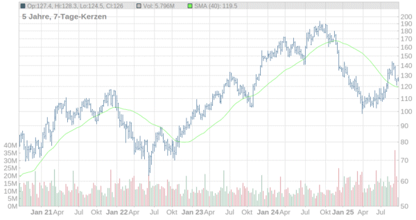 Die Aktie hat im August den seit September 2024 gültigen Abwärtstrend gebrochen und die 200-Tage-Linie zurückerobert. Nach einem nochmaligen Rücksetzer in den Bereich des gleitenden Durchschnitts sollte sich der positive Trend fortsetzen. Wird das Jahreshoch von Anfang September bei 144 Dollar geknackt, ist ein weiterer Anstieg in den Bereich zwischen 165 und 170 Dollar realistisch. Längerfristig könnte die Lennar-Aktie wieder ihr Allzeithoch bei 194 Dollar anvisieren.