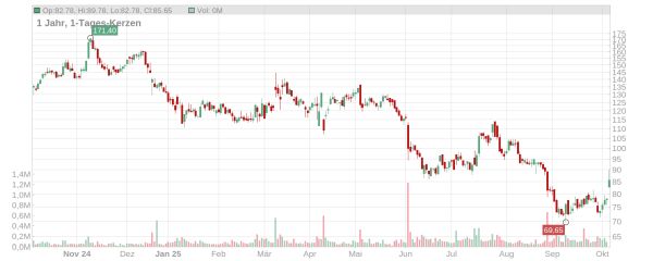Der Kurs der Redcare Pharmacy-Aktie kletterte nach der Präsentation vorläufiger Quartalszahlen im Vormittagshandel um rund neun Prozent auf etwa 85 Euro (Stand: 06. Oktober 2025, ca. 13 Uhr). Seit dem tiefsten Stand seit mehr als zwei Jahren (Anfang September bei gut 70 Euro) hat das Papier etwa 17 Prozent zugelegt.