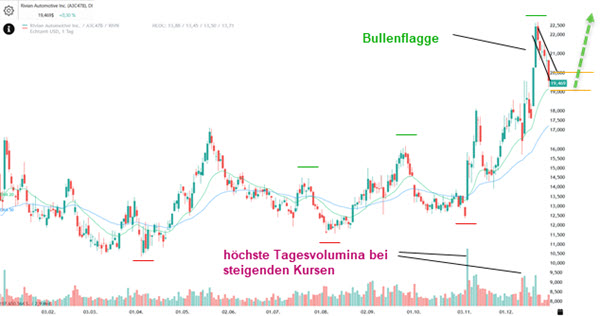 - der Tatsache, dass es die höchsten Handelsvolumina an Tagen mit steigenden Kursen gab.