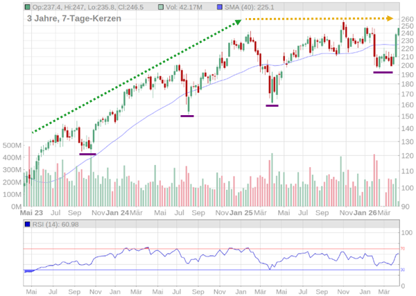 Wenn sich der Gewinn pro Aktie bis 2029 wirklich auf 14 US-Dollar nahezu verdoppelt, würde dies zu einem starken Kurs-Anstieg führen. Die Kombination aus fundamentale KI-Power und diesem stabilen technischen Aufwärtstrend macht die Aktie zu einem der spannendsten Basisinvestments für die kommenden Jahre.