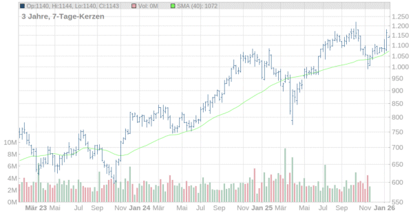 Im Oktober hatte die BlackRock-Aktie mit 1.220 Dollar ihr vorläufiges Allzeithoch erreicht, bevor es zu einer Korrektur kam, die im Bereich der 200-Tage-Linie endete. Nach der Zahlenvorlage zog der Kurs kräftig an und nimmt jetzt schon wieder Kurs auf seine Höchststände.