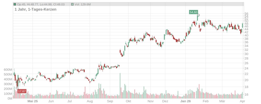 Jahreschart Intel Aktie, Quelle: https://aktienscreener.com/