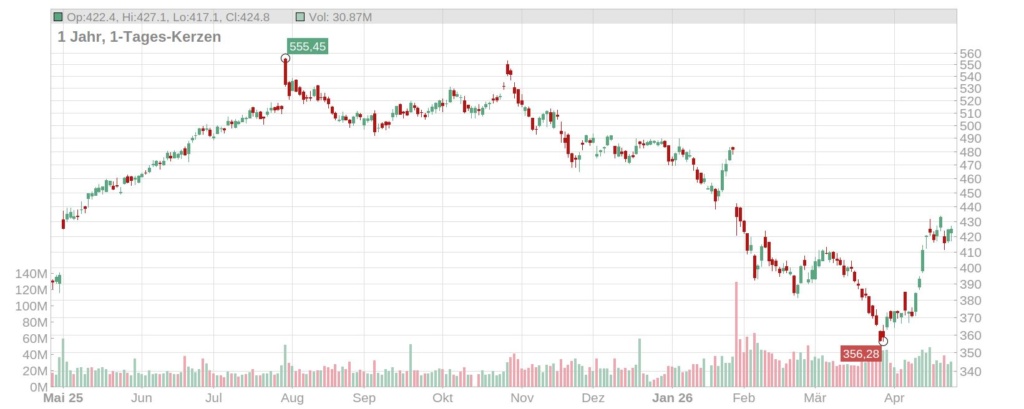 Jahreschart Microsoft Aktie, Quelle: https://aktienscreener.com