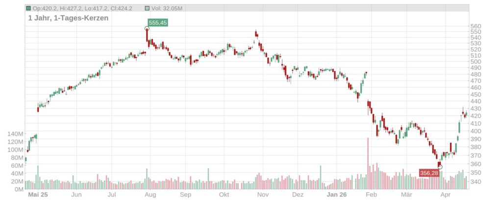 Jahreschart Microsoft Aktie, Quelle: https://fundamental.aktienscreener.com