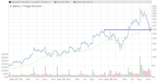 Nach der Zahlenvorlage explodierte die Oracle-Aktie geradezu und kletterte in der Spitze bis auf ein neues Allzeithoch bei 346 Dollar. Von hier aus kam es allerdings zu einer massiven Korrektur. Bis zum Tief, das vergangene Woche bei 186 Dollar erreicht wurde, büßte der Kurs satte 46% ein.