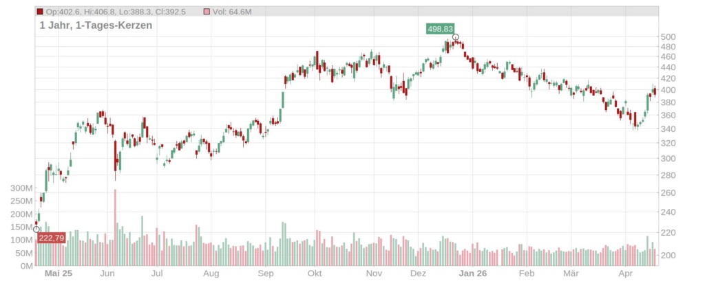 Jahreschart Tesla Aktie, Quelle: https://aktienscreener.com
