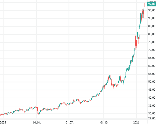 Zumindest fast. Silber hat heute bislang das Hoch bei 99,68 US-Dollar gezeigt – Gold bei 4.967 US-Dollar. Gold und Silber bewegen sich (für viele) endlich nicht mehr primär als Rohstoffe, sondern als monetäre Spiegel. Sie reagieren weniger auf industrielle Nachfrage oder kurzfristige Konjunkturdaten, sondern auf Vertrauensverschiebungen im globalen Finanzsystem.
